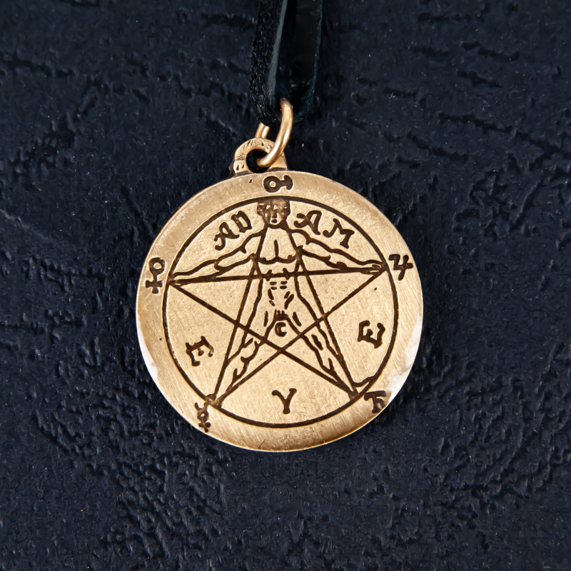 Agrippa's pentagram is a basic amulet in ritual magic protecting a person (i.e. a universal figure located in the macrocosm) from the evil influence of supernatural forces, spirits and their plans. It is supposed to provide the magician with all-round protection and return to the world of the living at any moment. Wearing this talisman protects against superstitions, evil omens and curses.