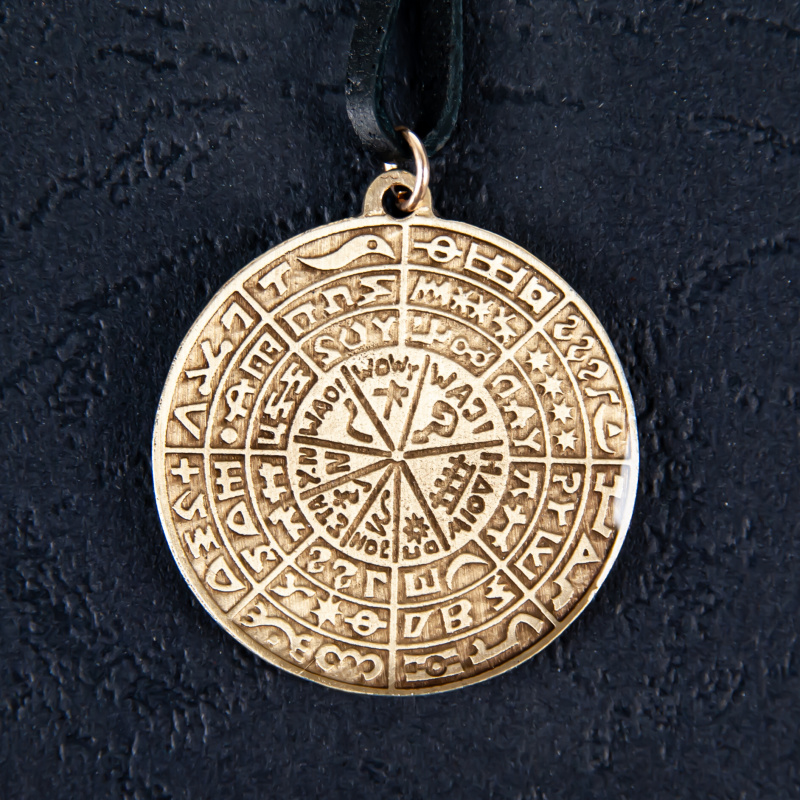 Prognosticon - ancient Greek magic circle (parchment around 3rd century BC), which was used to communicate with the beyond and predict the future. It has survived as a traditional model for oracle tables. As a talisman, it serves to develop the subconscious and intuition, helping to discover supernatural abilities within oneself and thus avoid undesirable situations.
