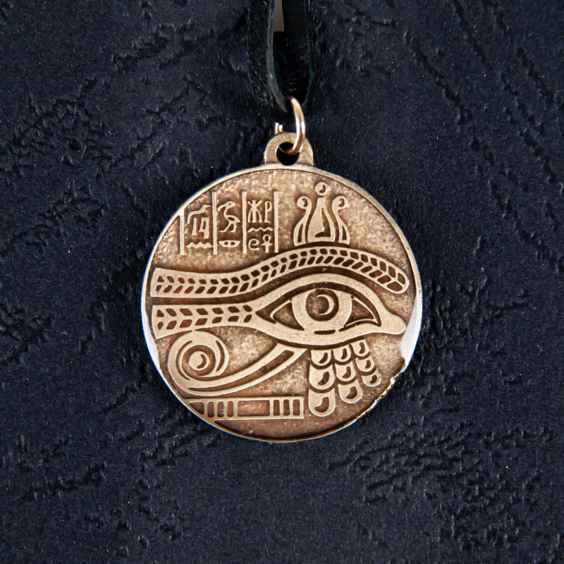 Udjat - the holy eye of Horus (the god of heaven). It symbolizes foresight and omniscience gained through sensory perception of the world. It symbolizes and gives eternal vigilance. It also represents the constant omnipresence of the gods who see always and everywhere - the symbolic eye. As an amulet, it is meant to protect against the adversity of the gods, superiors and others who might complicate one's future destiny.