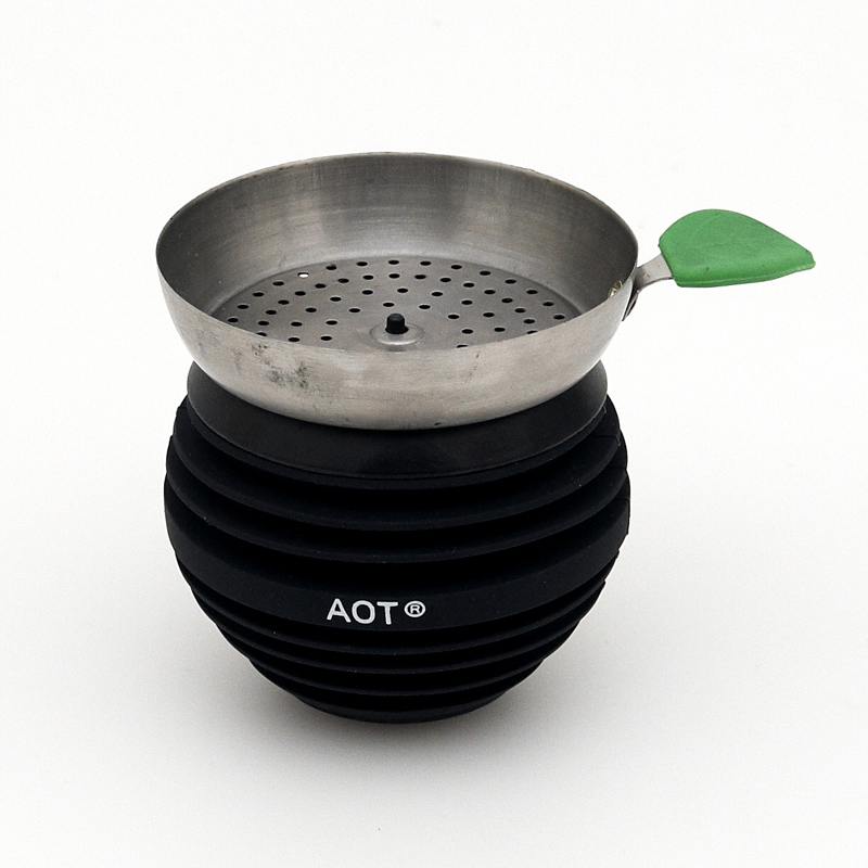 Apple on Top brings a fresh breeze to traditional hookah bowls. It features a vortex-style aluminum core to prevent molasses dripping. There is a silicone cover around the aluminum core, making the AOT bowl easy to use and always cool to the touch. On top of the bowl is a charcoal strainer with a handy apple leaf shaped handle. With its unbreakable construction and enhanced hookah smoking enjoyment, you won't want another bowl. Apple on Top comes in a variety of cheerful colours to match any hookah.