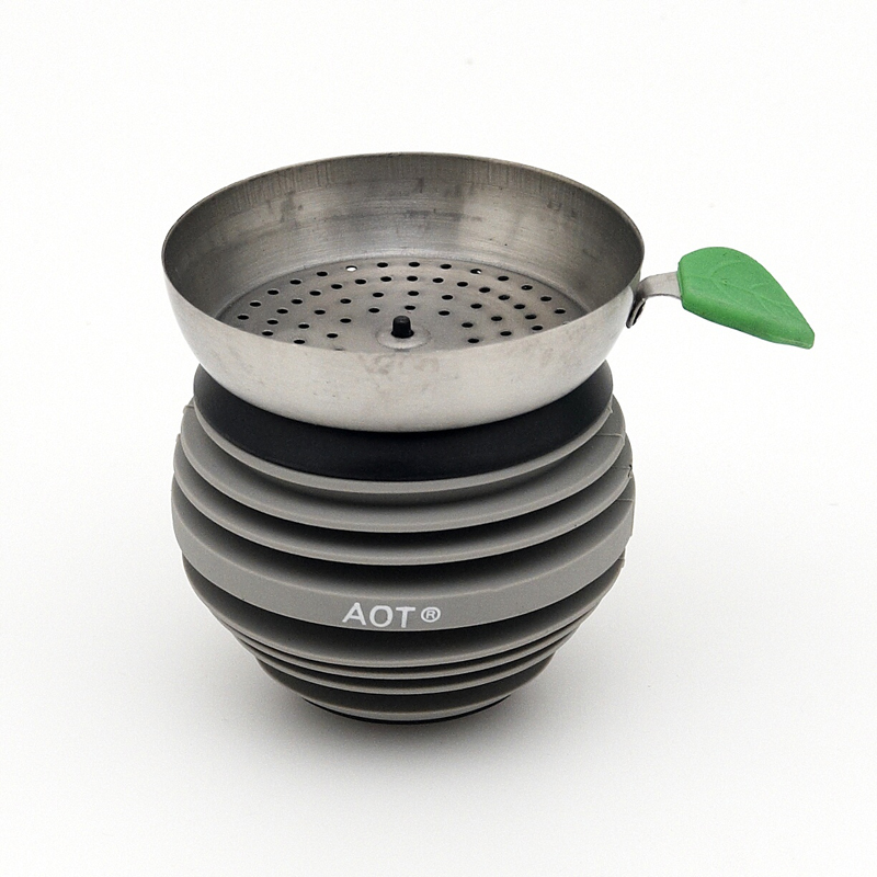 Apple on Top brings a fresh breeze to traditional hookah bowls. It features a vortex-style aluminum core to prevent molasses dripping. There is a silicone cover around the aluminum core, making the AOT bowl easy to use and always cool to the touch. On top of the bowl is a charcoal strainer with a handy apple leaf shaped handle. With its unbreakable construction and enhanced hookah smoking enjoyment, you won't want another bowl. Apple on Top comes in a variety of cheerful colours to match any hookah.