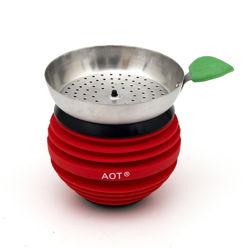 Apple on Top brings a fresh breeze to traditional hookah bowls. It features a vortex-style aluminum core to prevent molasses dripping. There is a silicone cover around the aluminum core, making the AOT bowl easy to use and always cool to the touch. On top of the bowl is a charcoal strainer with a handy apple leaf shaped handle. With its unbreakable construction and enhanced hookah smoking enjoyment, you won't want another bowl. Apple on Top comes in a variety of cheerful colours to match any hookah.