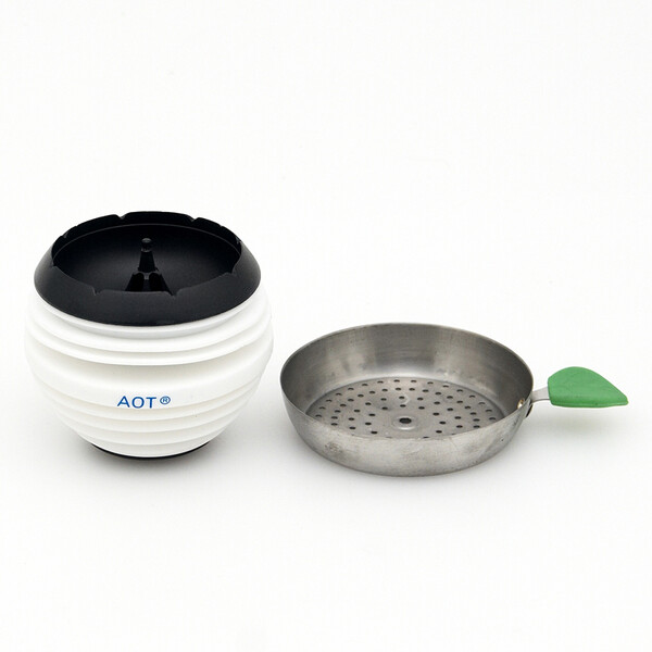 Apple on Top brings a fresh breeze to traditional hookah bowls. It features a vortex-style aluminum core to prevent molasses dripping. There is a silicone cover around the aluminum core, making the AOT bowl easy to use and always cool to the touch. On top of the bowl is a charcoal strainer with a handy apple leaf shaped handle. With its unbreakable construction and enhanced hookah smoking enjoyment, you won't want another bowl. Apple on Top comes in a variety of cheerful colours to match any hookah.