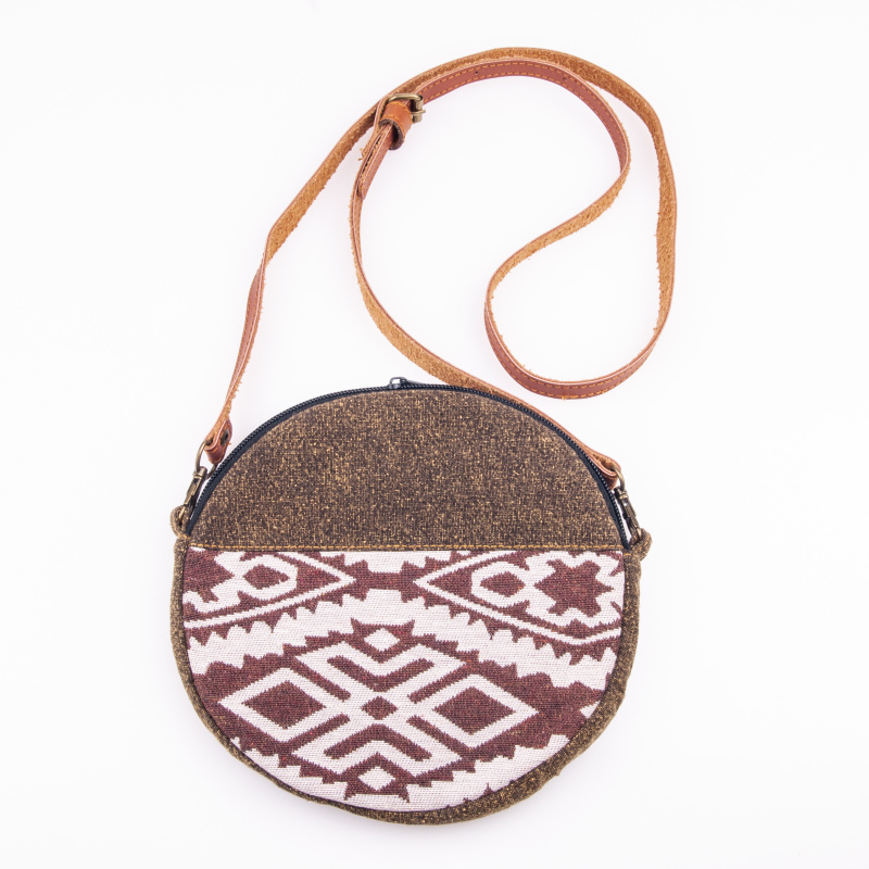 Keys, money, a packet of tissues, documents and other small items that you can't do without on any walk or day trip. It all fits comfortably in the Kanok Round cotton bag with leather strap and cool patterning.