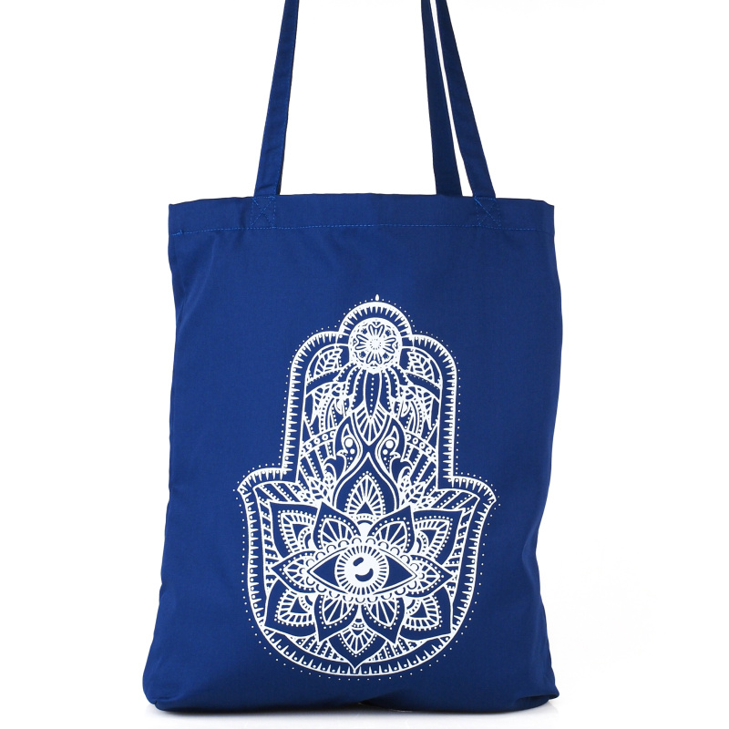 The bag is decorated with a beautiful print of Hamsa's hand, making it a joyful accessory to carry every day.