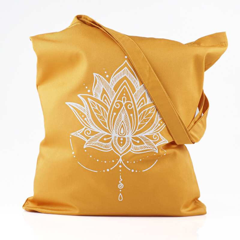 The bag is decorated with a beautiful print of a lotus flower, making it a joyful accessory to carry every day.