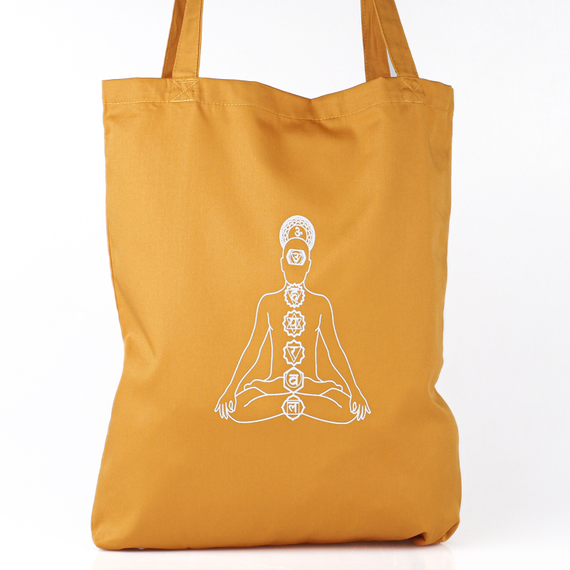 The bag is decorated with a beautiful print of the seven chakras, making it a joyful accessory to carry every day.