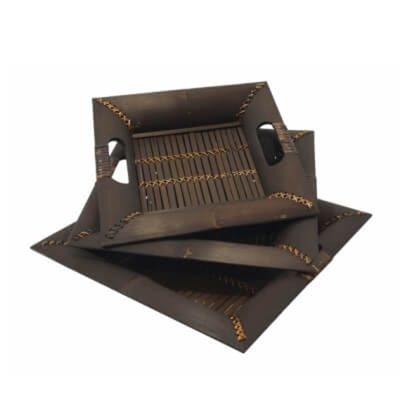 Bamboo Tray Set Square 01 30 x 30 cm Brown