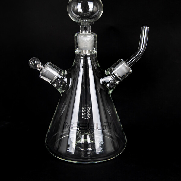 The Nebula Rhea all-glass pipe is equipped with stoppered joints that free the pipe from the need for seals. The integrated diffuser allows for a light draw, while the glass crown and strainer make aftercare easy.