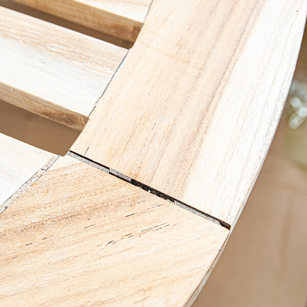Complete set. That's all you need. Perhaps just something to fill a spacious, handmade table. And figure out whether you'll place the set, consisting of a bench, table and two chairs, inside or use it as garden furniture. Just bear in mind that for outdoor use, teak sofas require additional treatment to withstand the rigours of the weather. As the table is made of teak, we recommend using products designed for tropical hardwoods.
