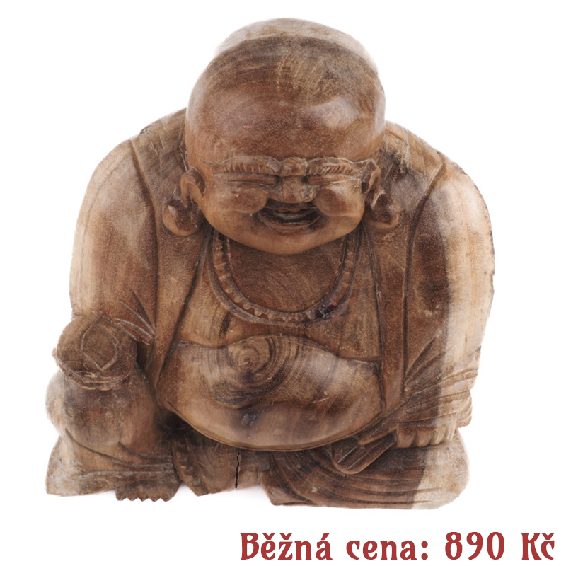 Product description Bazar - Wooden Statuette Happy Buddha 15 cm Natural 01