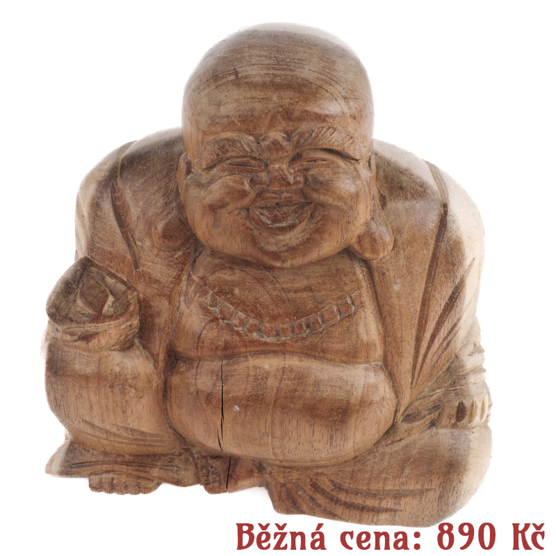 Product description Bazar - Wooden Statuette Happy Buddha 15 cm Natural 03