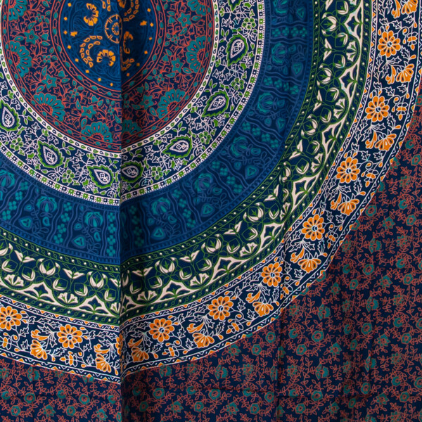 During the day, the bedspread protects pillows and blankets from dust. It is also suitable for covering seating furniture. It is also a design accessory that allows you to express your style. Made in India and decorated with mandala patterns and typical Indian motifs, the Cotton Bedspread is the perfect design accessory for your bedroom.