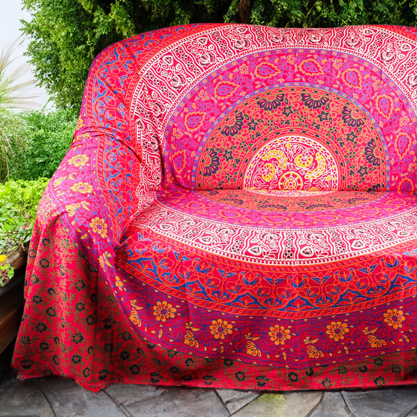 During the day, the bedspread protects pillows and blankets from dust. It is also suitable for covering seating furniture. It is also a design accessory that allows you to express your style. Made in India and decorated with mandala patterns and typical Indian motifs, the Cotton Bedspread is the perfect design accessory for your bedroom.