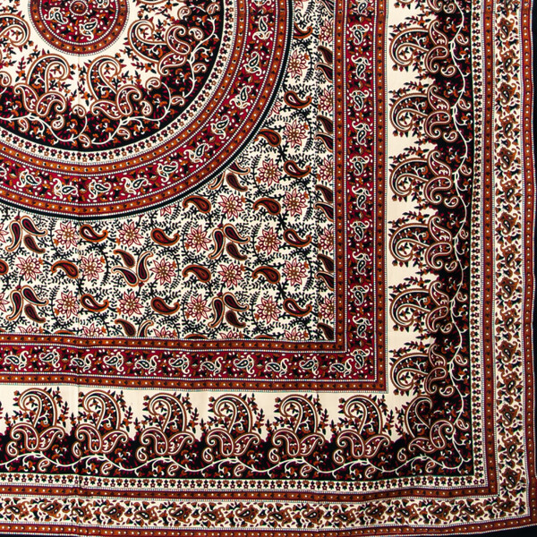 During the day, the bedspread protects pillows and blankets from dust. It is also suitable for covering seating furniture. It is also a design accessory that allows you to express your style. Made in India and decorated with mandala patterns and typical Indian motifs, the Cotton Bedspread is the perfect design accessory for your bedroom.