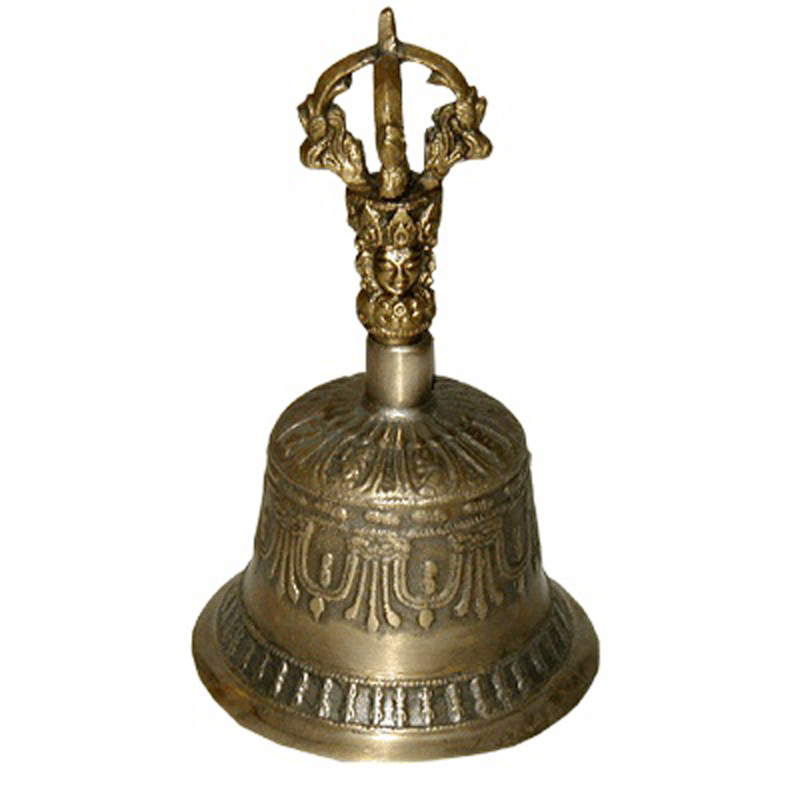 Best selling Tibetan bell - medium bell, decorated, with handle in the shape of a dorje, 15 cm