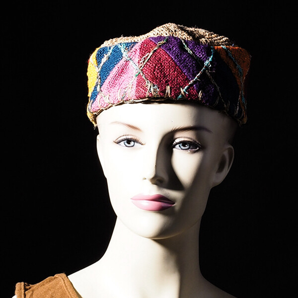 Colourful and very stylish beret made of hemp and cotton