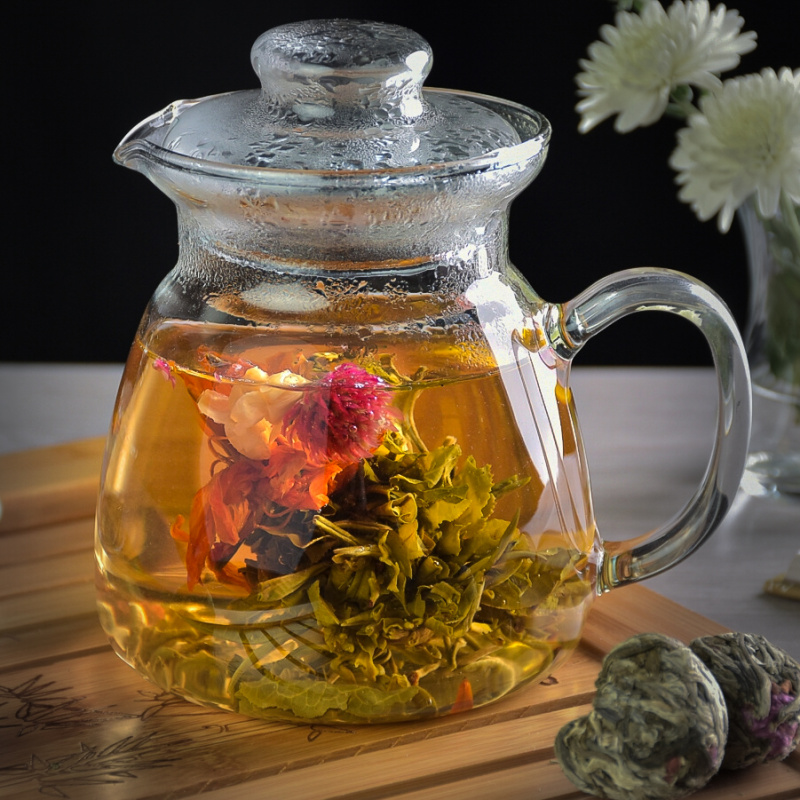 Ai Xing Feng Xian Flowering Tea is a high-quality, hand-bound green tea from China. One tea ball can be used to make about 1 l - 1.5 l of tea.