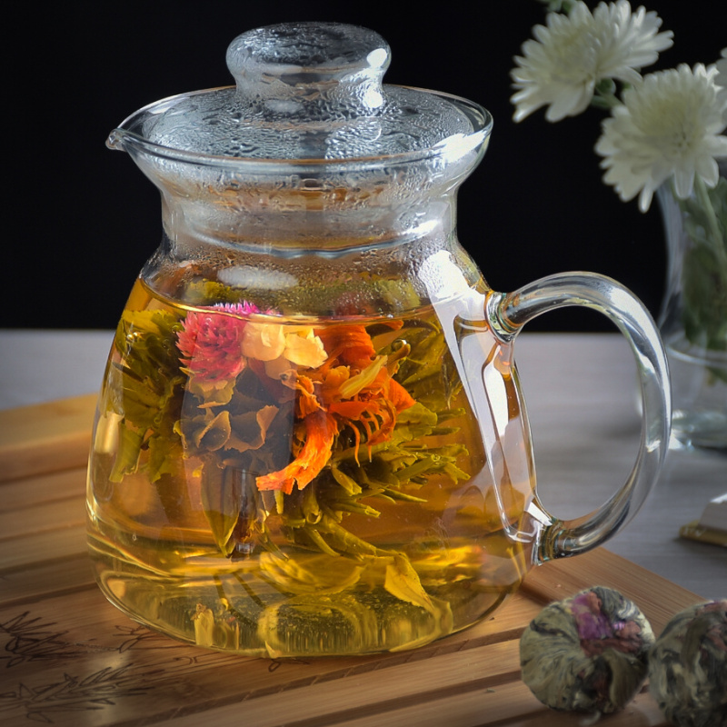 Bai He Xian Zi Flowering Tea is a high quality, hand-bound green tea from China. One tea ball can be used to make about 1 l - 1.5 l of tea.
