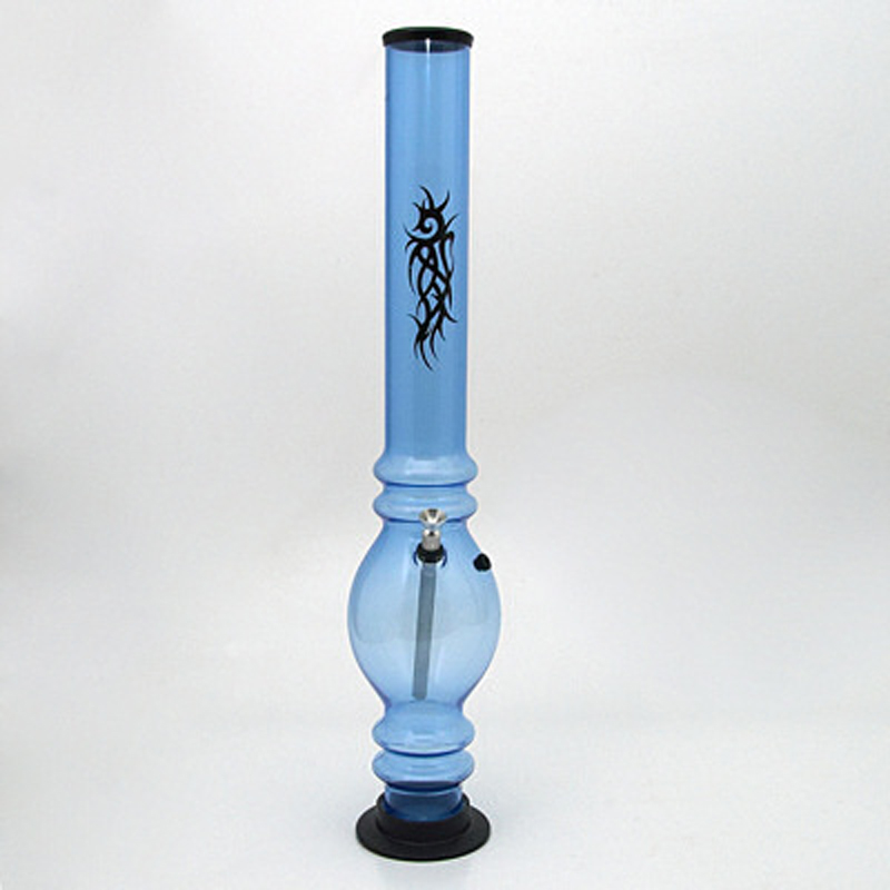 Large bong made of hardened plastic with one bubble, tattoo image and metal pot, bong type acrylic UV Tattoo 50cm blue