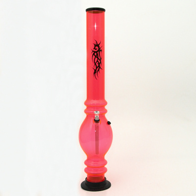 Large bong made of hardened plastic with one bubble, tattoo image and metal pot, bong type acrylic UV Tattoo 50 cm orange