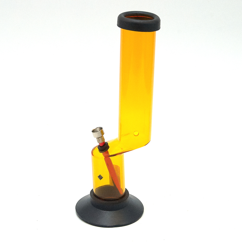 Interesting medium sized bong made of hardened plastic, damage resistant, with a bend for ice cooling