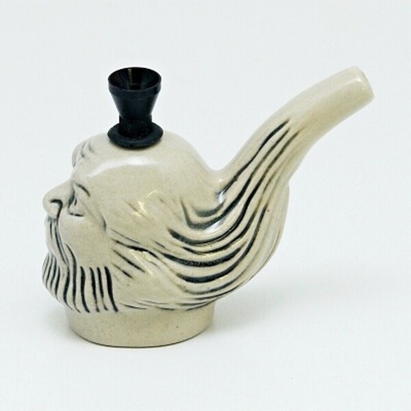 Small bong made of ceramics with the head of a bearded man with long hair, with a turban.