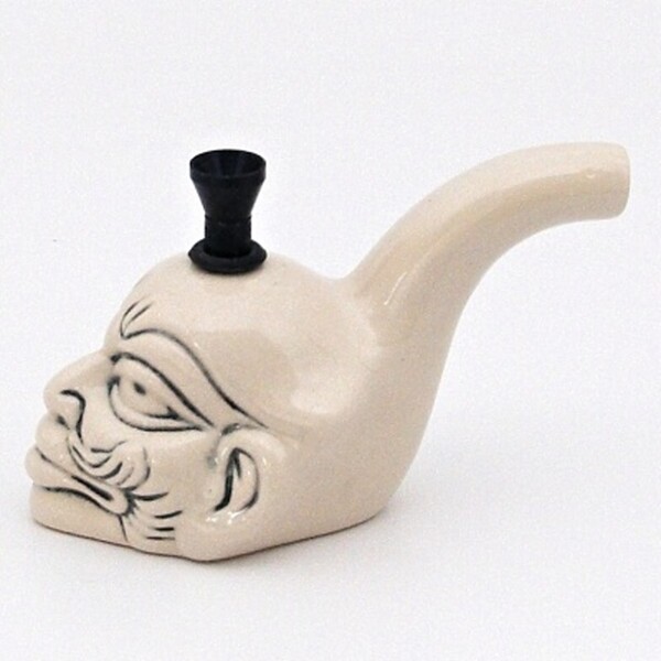 Small white ceramic bong in the shape of a clown head