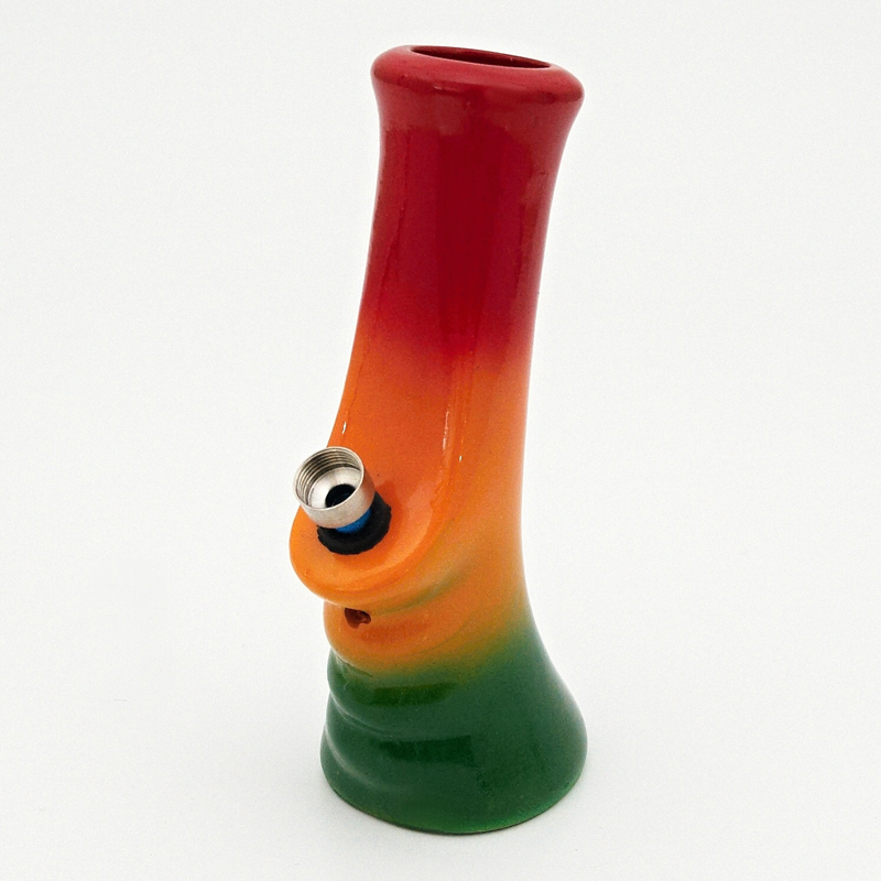 Medium ceramic bong with grip for better holding in rasta colour combination