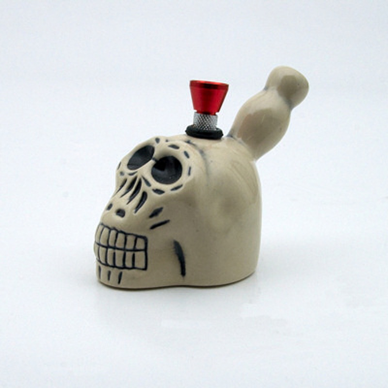 Small ceramic bong in the shape of a white monkey skull