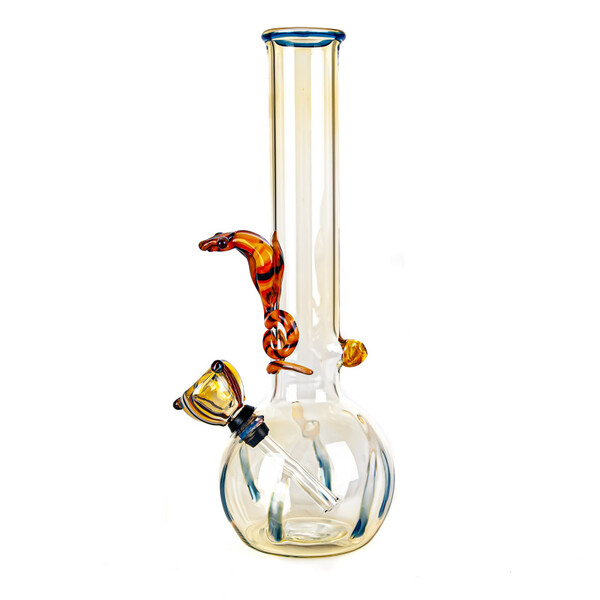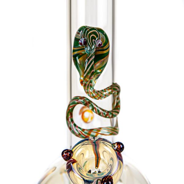 Pyrex bong with cobra motif.