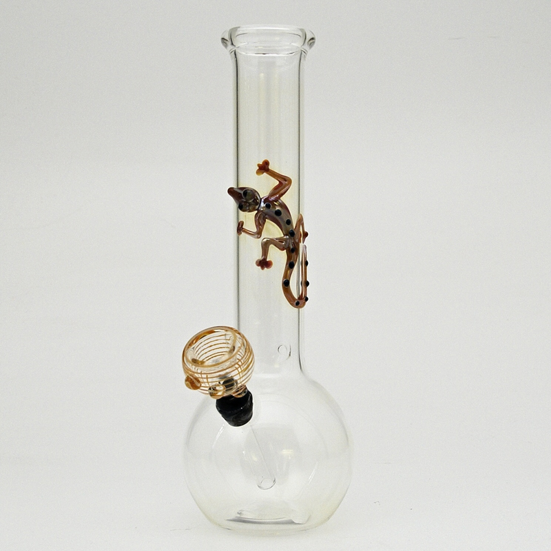 Pyrex bong with lizard motif.
