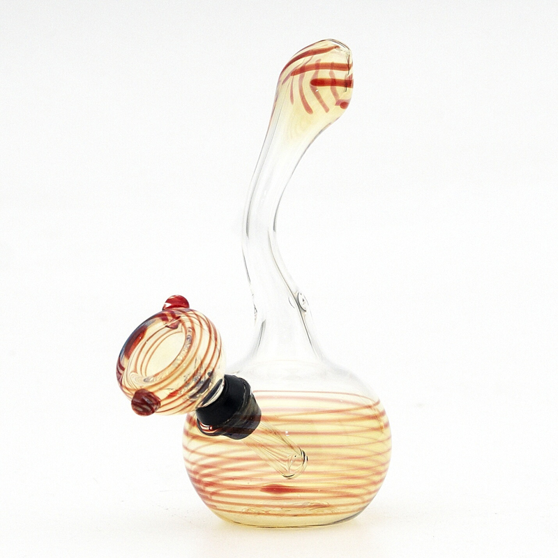Small, beautifully coloured bong made of durable pyrex borosilicate glass with curved mouthpiece