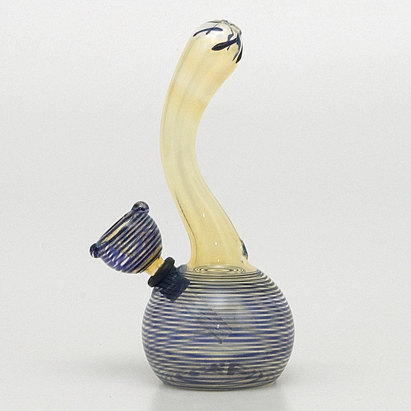 Small beautifully coloured bong made of durable pyrex borosilicate glass with curved mouthpiece