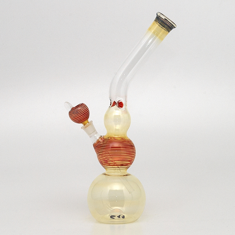 Large subtly decorated bong made of durable pyrex borosilicate glass with triple bubble and curved handle