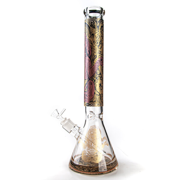 Beautiful bong from the limited edition of the Amsterdam brand, medium size, made of tempered glass with high resistance to high temperatures and chemical influences, decorated with the motif of the elephant god Ganesha.