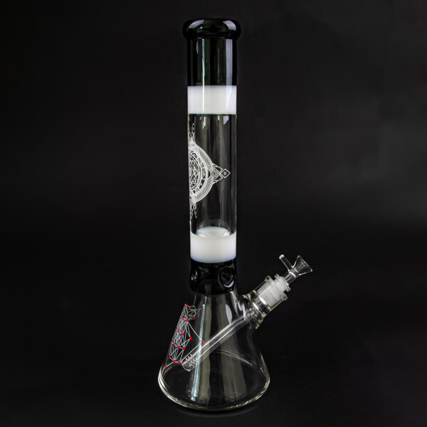 Medium size clear bong made of durable tempered glass Simax decorated with geometric motifs.