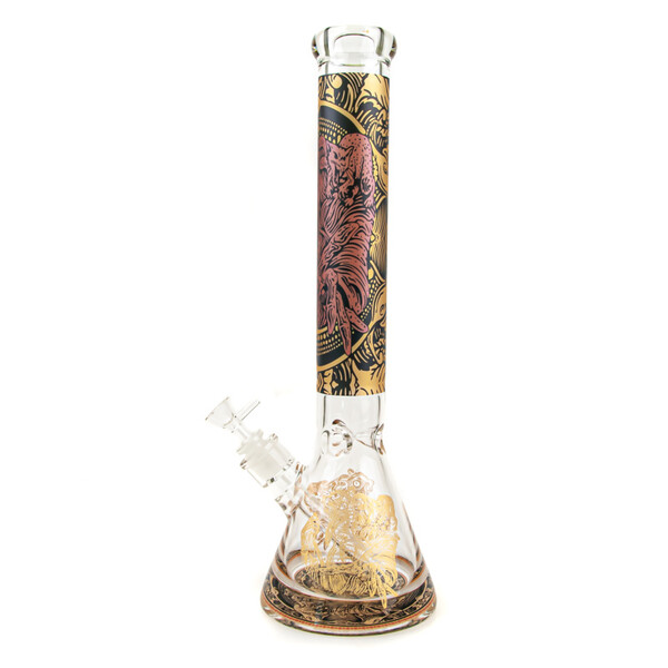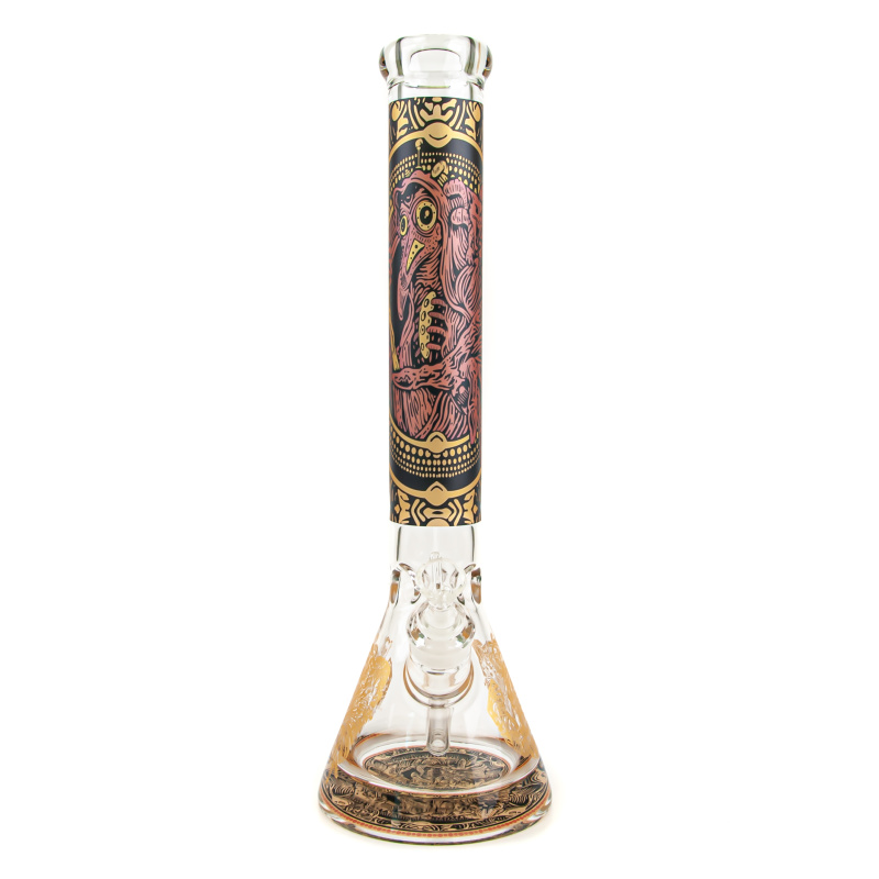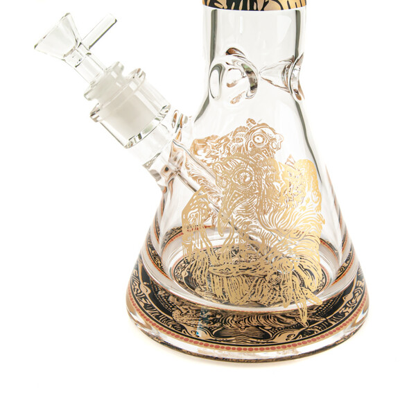 Medium size clear bong made of durable tempered glass Simax decorated with plague mask motif.