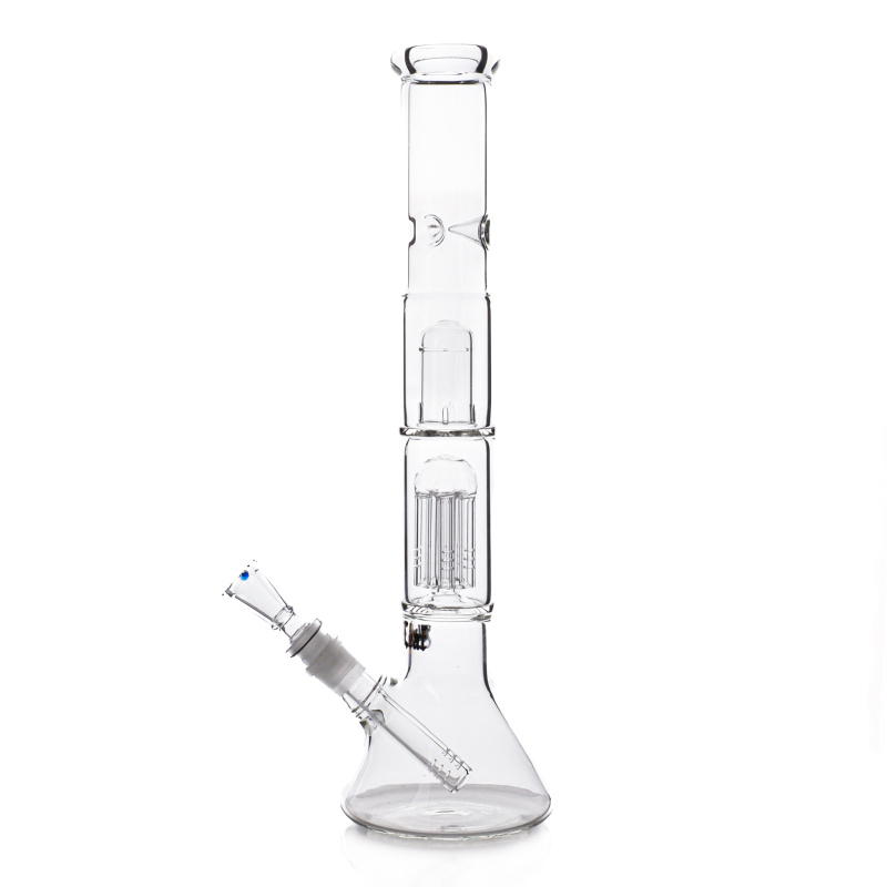 Medium size clear bong made of durable Simax tempered glass with built-in percolator for smoke cooling.