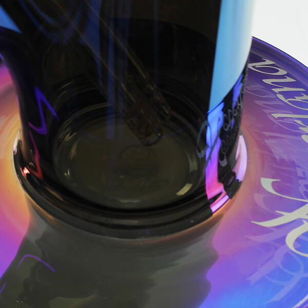 Unmissable. The expression that first comes to mind when looking at the 40 cm high Simax Black Leaf Neverland Metallic bong in blue. It is covered with a shiny metallic layer that changes shade from different angles.