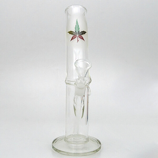 Medium-sized clear bong made of durable tempered Simax glass with unusual curved mouthpiece