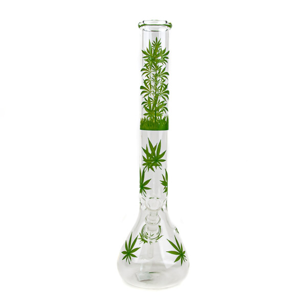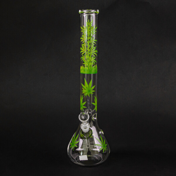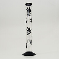 Large size clear bong made of durable tempered glass Simax decorated with hemp leaf motif.
