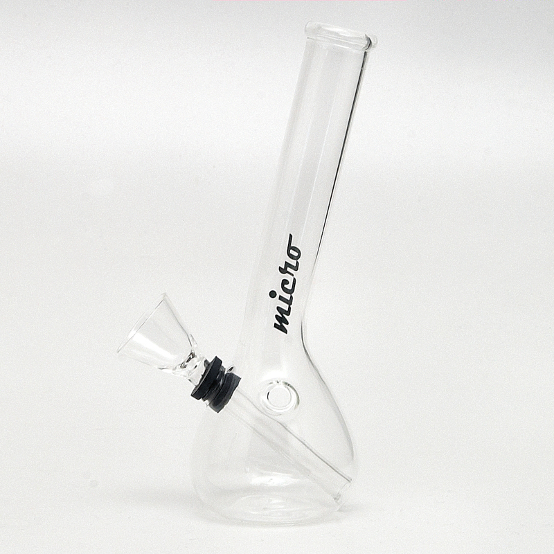 Small clear bong made of durable tempered glass Simax with curved mouthpiece and micro logo