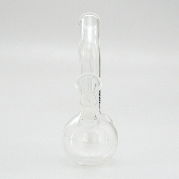Small clear bong made of durable tempered glass Simax with curved mouthpiece and micro logo