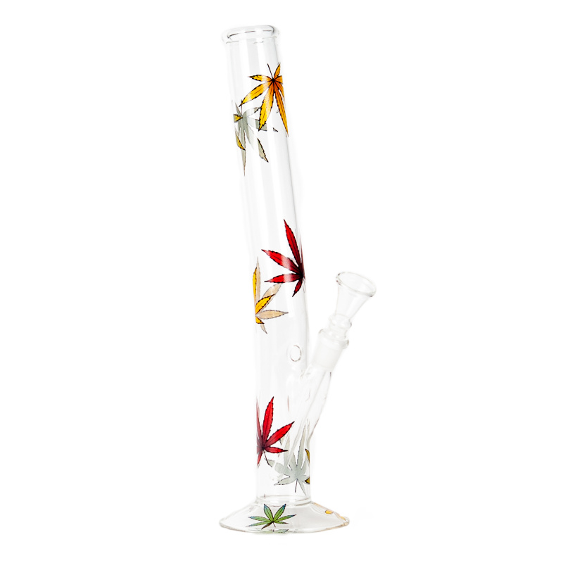 Medium cylindrical glass bong with autumn leaves decals, bong type Simax Multi Leaf 32 cm