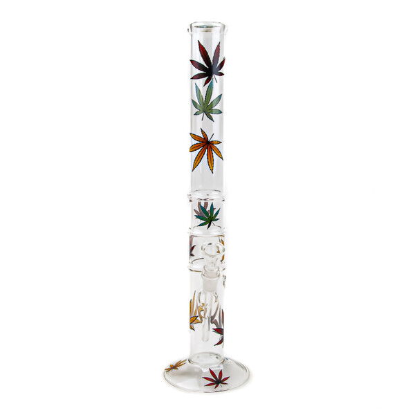 Medium size clear bong made of durable tempered glass Simax decorated with hemp leaf motif.