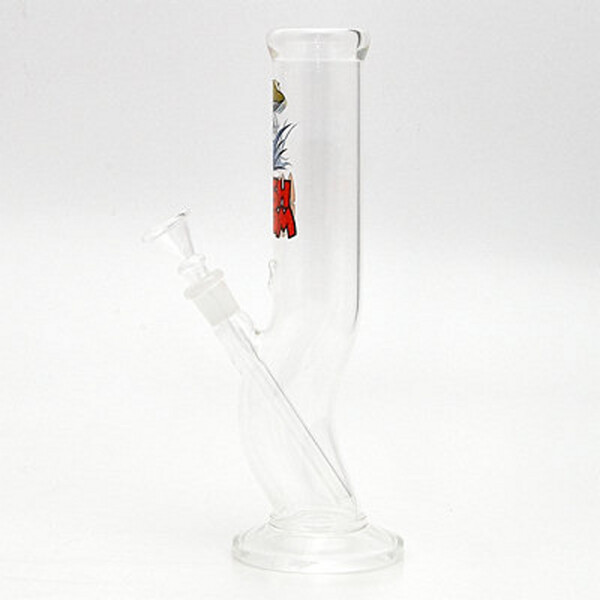 Medium size clear bong made of durable tempered glass Simax decorated with mushroom motif and inscription