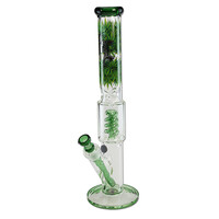 Smaller bong with round flask made of durable tempered Simax glass. The bong is coloured in traditional rasta colours