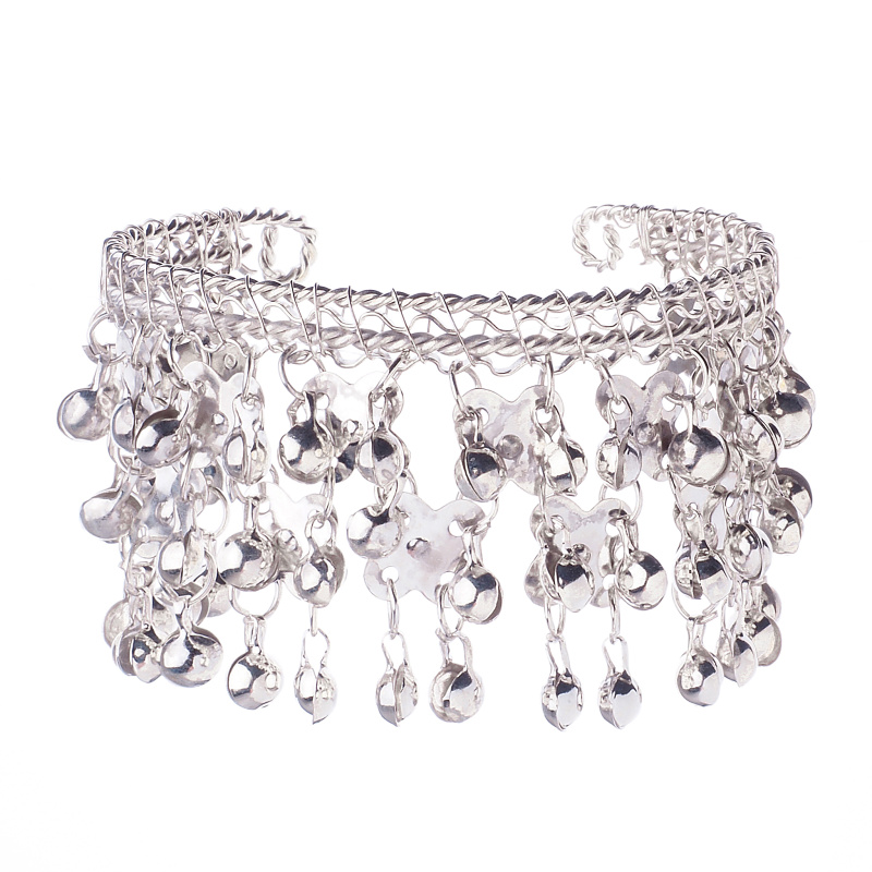 Belly dance bracelet Ament, decorated with bells, adjustable size, silver