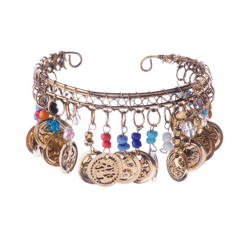 Ana belly dance bracelet, decorated with beads and pennies, adjustable size, gold color
